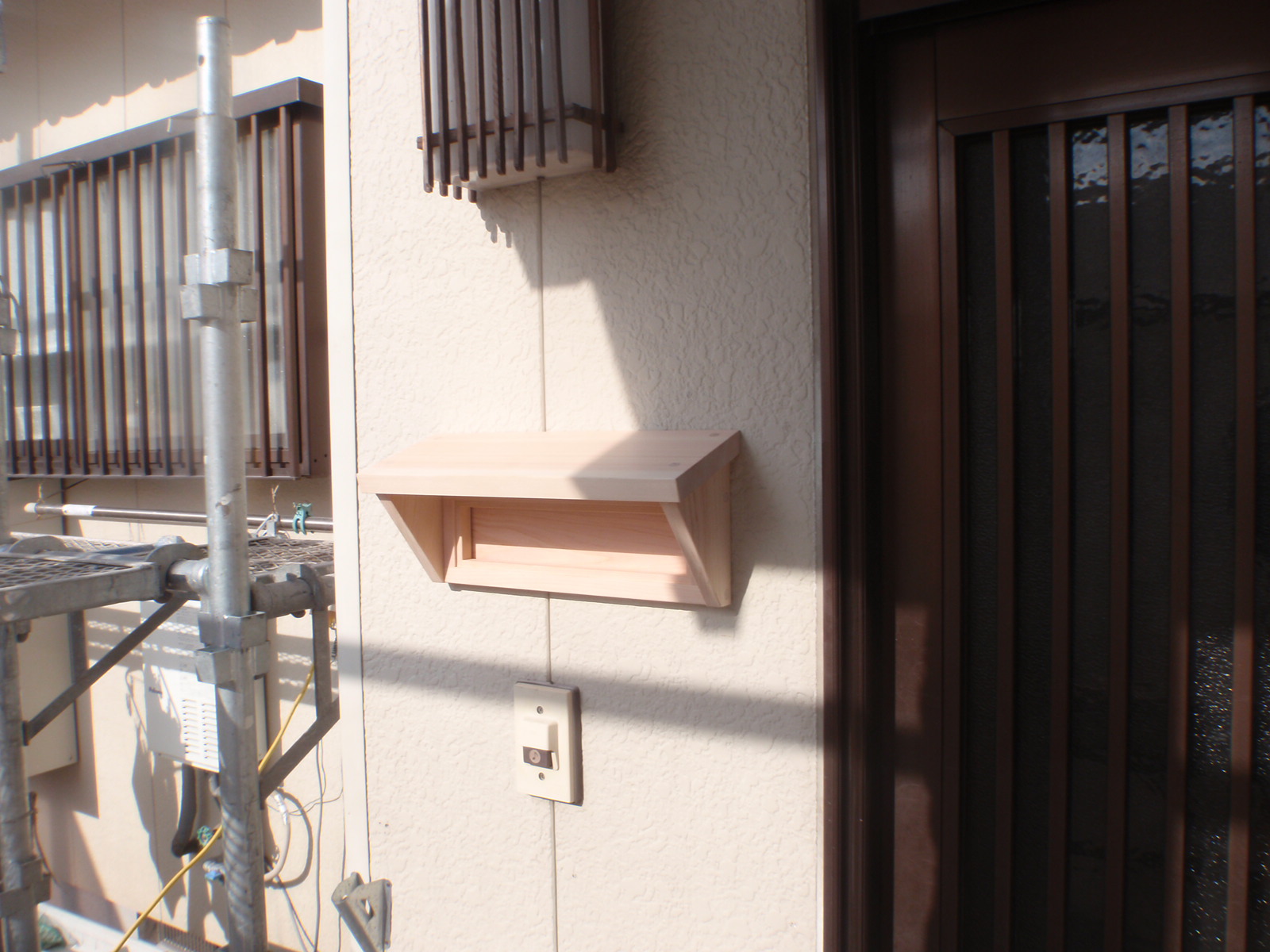 玄関には、木製のポストを作成し ポーチの柱も新しく入れ替え 玄関タイルも張り替えになります。