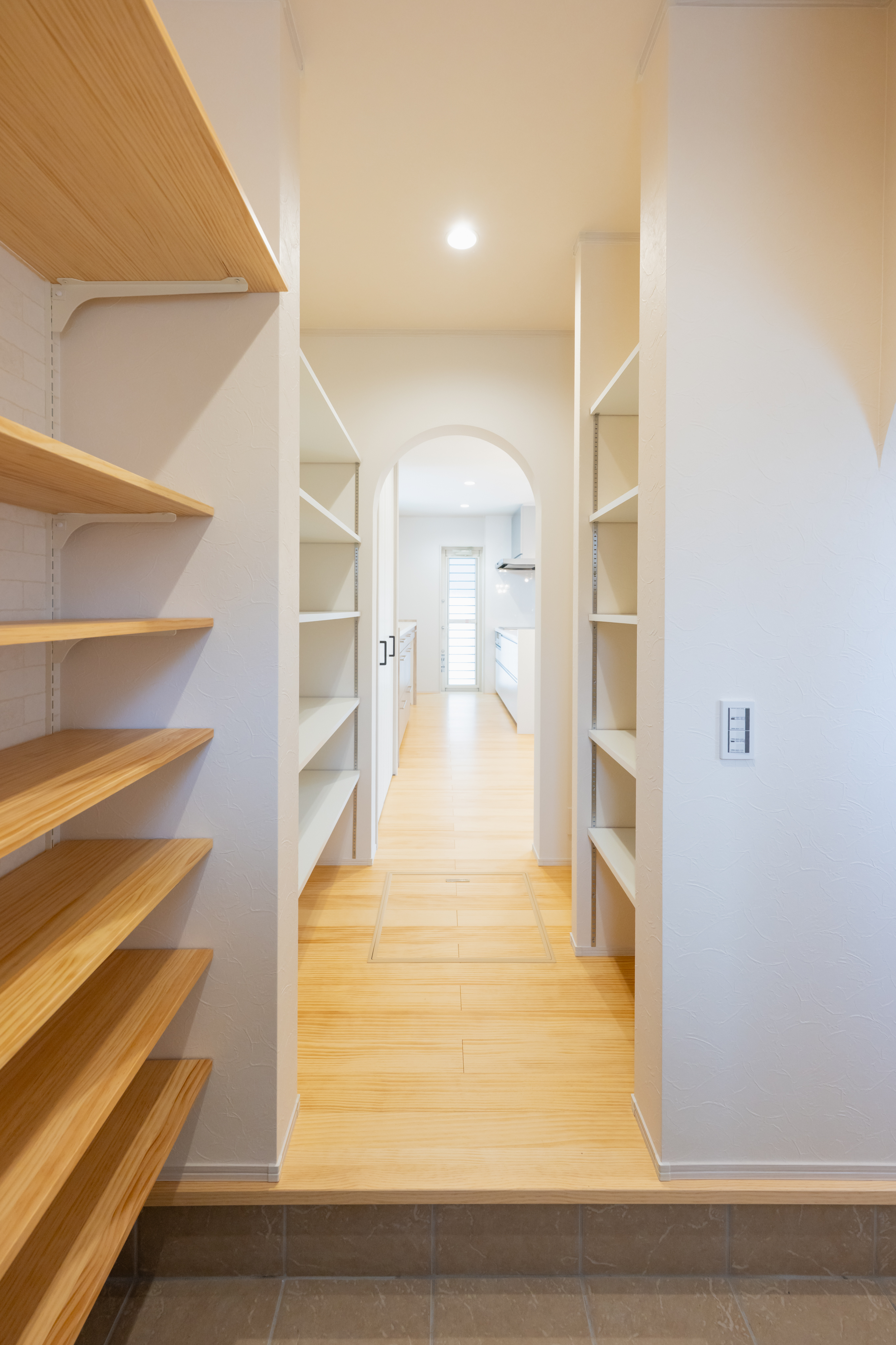 玄関から土間収納、パントリー、キッチンまでがつながっているので、買い物帰りの荷物もそのまま運べます。