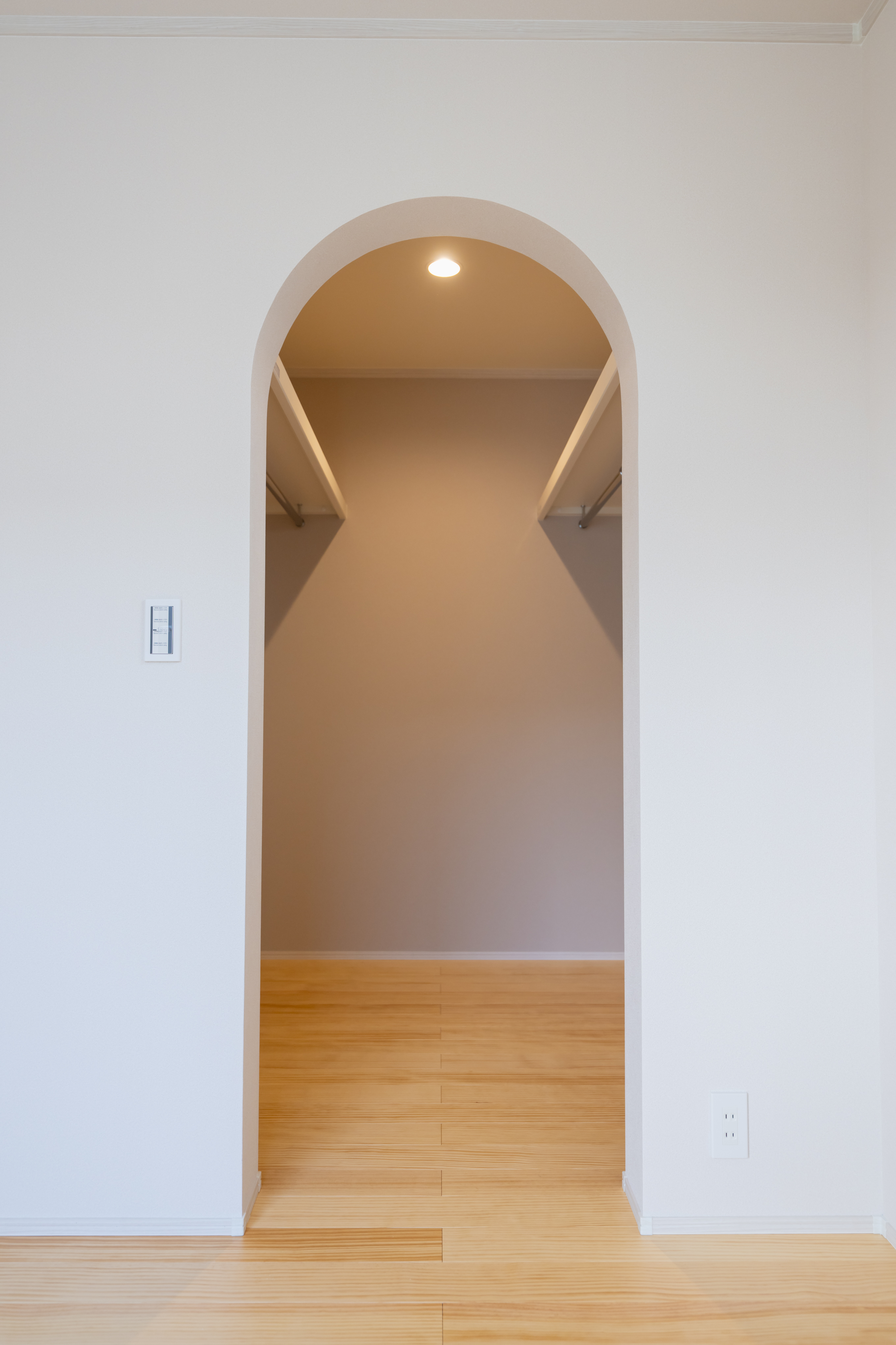 アーチ天井は、やわらかな曲線が空間にやさしい雰囲気を生み出します。丸みのある形が天井を高く見せ、実際よりも広く感じられるのが魅力です。デザインだけでなく構造的にも強度があり、安心感のある心地よい空間をつくってくれます。