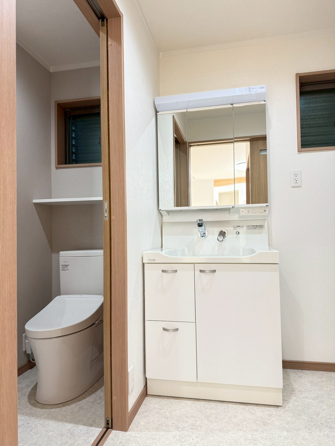 浴室、脱衣場、そしてトイレを一箇所に集約。特に脱衣場のすぐ隣にトイレを配置することで、入浴前後の利用がスムーズです。